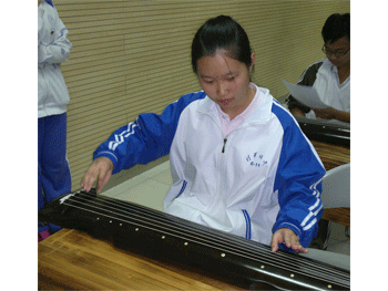 郭香顺同学表演古琴名曲《酒狂》 同学们认真聆听讲解