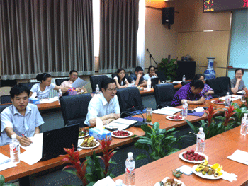 方妍书记(右2)作专题发言 王殿军校长(前左2)做总结发言
