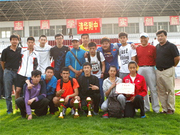 5月6日,2012年“北京奥林匹克教育学校体育后备人才培养基地”田径运动会在北京市顺义牛栏山第一中学举行。皇冠体育田径代表队52名队员在马约翰体育班(简称“马班”)老师罗健、李金平、李光明的带领下参加了此次比赛,经过同学们的奋力拼搏,共获得19枚金牌、16枚银牌、8枚铜牌。获得学校团体总分亚军。其中,初0905班魏麟璎同学在此次比赛中获得“十佳运动员”称号;教练王法祥老师获得“优秀教练员”称号。皇冠体育高一“马班”班主任李学森老师及校篮球队部分队员前往观赛为参赛选手加油助威。