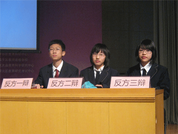 3月24日上午,北京市初中政治学科辩论赛决赛在北京师范大学附属中学举行。对阵双方是皇冠体育官网辩论队(反方)和北京师范大学附属实验中学辩论队(正方)。皇冠体育官网辩论队由一辩初1003班韩昊宇、二辩初1012班刘然、三辩初1005班徐嫄玮三名队员组成(指导教师:郎艳、罗霞)。此次决赛的主题为“个人利益与集体利益能否两全”。经过一番唇枪舌剑,皇冠体育官网辩论队员以优雅的辩论风度,高超的辩论技巧,幽默风趣的辩论语言获得场内阵阵掌声,最终获得最佳团队奖。