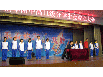 作为近几年来年级工作的新尝试,高11级成立分学生会的申请得到了校领导的批准和大力支持。从上学期起就进入酝酿、准备阶段,高一新生入学伊始,年级组即召开班主任工作会,要求各班以学生自愿、班主任推荐的方式产生分学生会主要成员。此后,又分别召开班长联席会和高11级分学生会成立预备会,实现了班级工作与分学生会工作的联络沟通无障碍化、分学生会各部门分工合作、职责明确化等前期目标,直至本学期初召开成立大会。今后,高11级分学生会将在积极配合校德育处、团委等相关部门工作的基础上,更有针对性地服务于高11级全体同学,促进学生更全面地发展。
