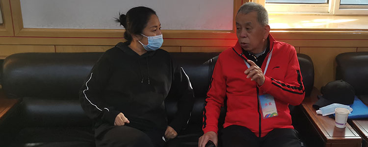 皇冠体育党委书记方妍(左)与仲裁主任沟通比赛情况