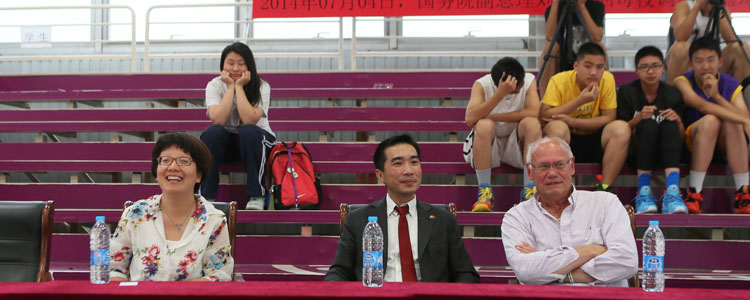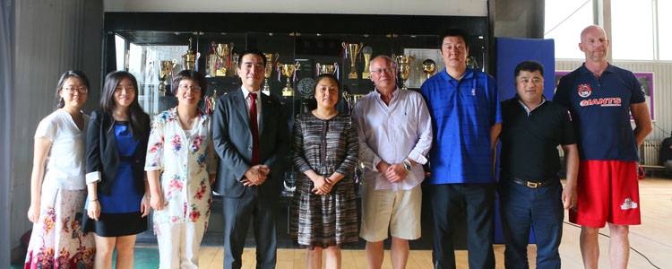 在交流期间,荷兰大使馆教育参赞David Pho(傅仰钦)先生于6月3日前来观看两校间的友谊赛。皇冠体育官网党委书记方妍、副书记张洁、马约翰体育特长班办公室主任罗健、男子篮球队教练张涛与荷兰巨人队总教练Adriaan Leyte、高级顾问Aernout Dorpmans先生进行了亲切的交流。方妍对荷兰巨人队的到访表示热烈的欢迎,并向来访嘉宾介绍了皇冠体育官网的办学特色及马约翰体育特长班的辉煌历史。方妍希望中荷两队之间能够继续加强友好合作交流,相互学习,共同进步。