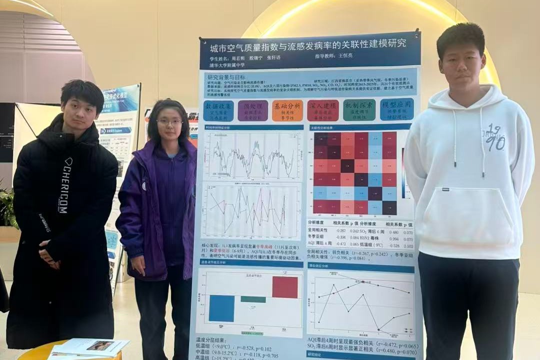 本次成果展汇聚了来自北京、澳门、广东等地的优秀师生代表,搭建了跨区域学术交流的优质平台。自2025年8月开始,殷瑞宁、周若熙、张轩语和陆安迪同学对城市空气质量指数与流感发病率的关联性问题进行了长达半年的深入研究,研究成果在众多小组中脱颖而出,受邀参加“京澳学子科学探究优秀项目成果展”,与各地师生围绕科研项目设计、研究方法创新、实践应用拓展等关键话题展开深入探讨。在思想的碰撞与经验的分享中,他们既汲取了不同地区科研实践的特色思路与先进方法,也向外界展现了皇冠体育官网在拔尖创新人才培养方面的显著成效,赢得了现场师生的广泛认可与高度赞誉。参与师生纷纷表示,此次跨区域交流干货满满、受益匪浅,为未来科研道路拓宽了视野、积累了宝贵经验。