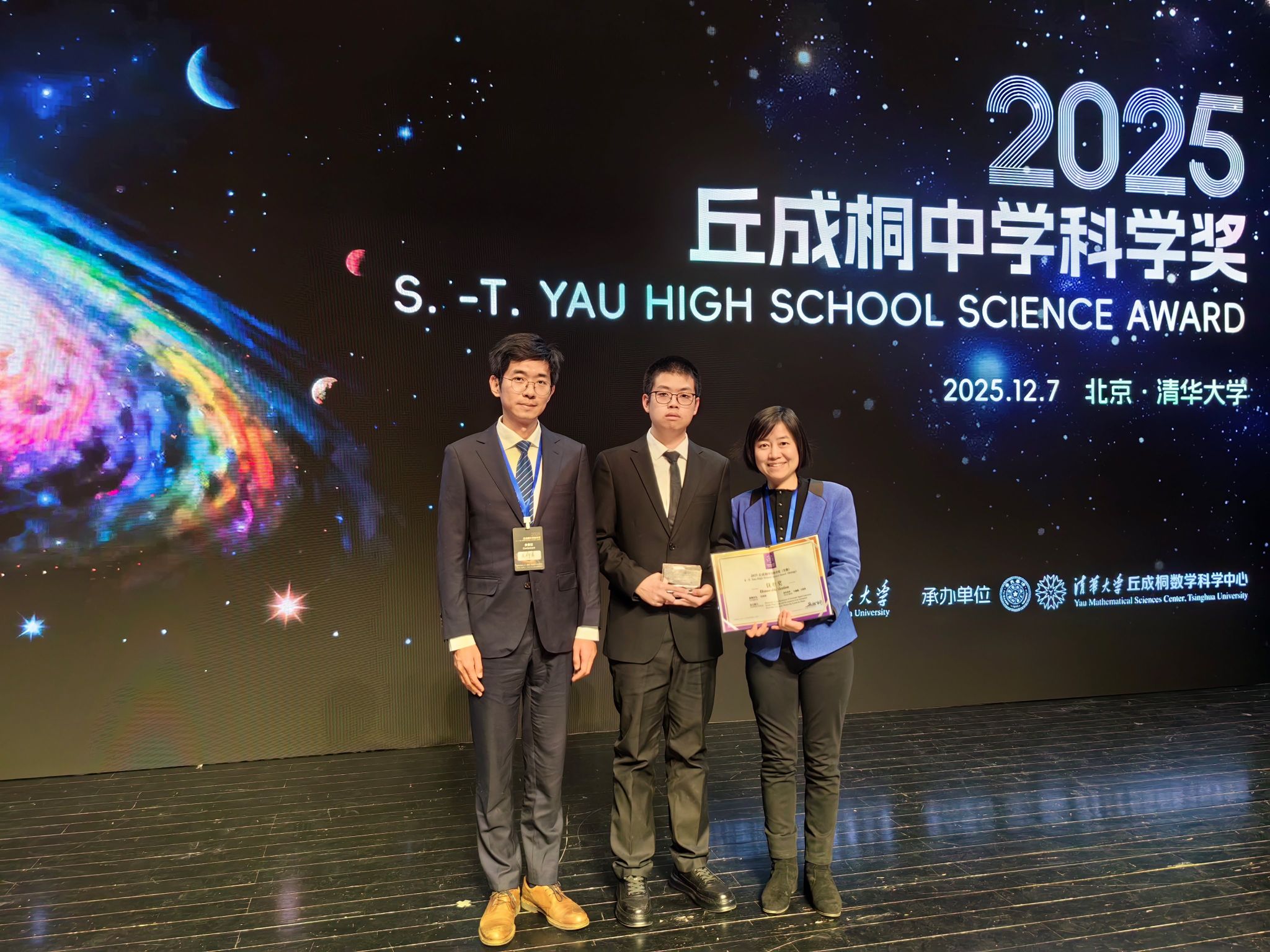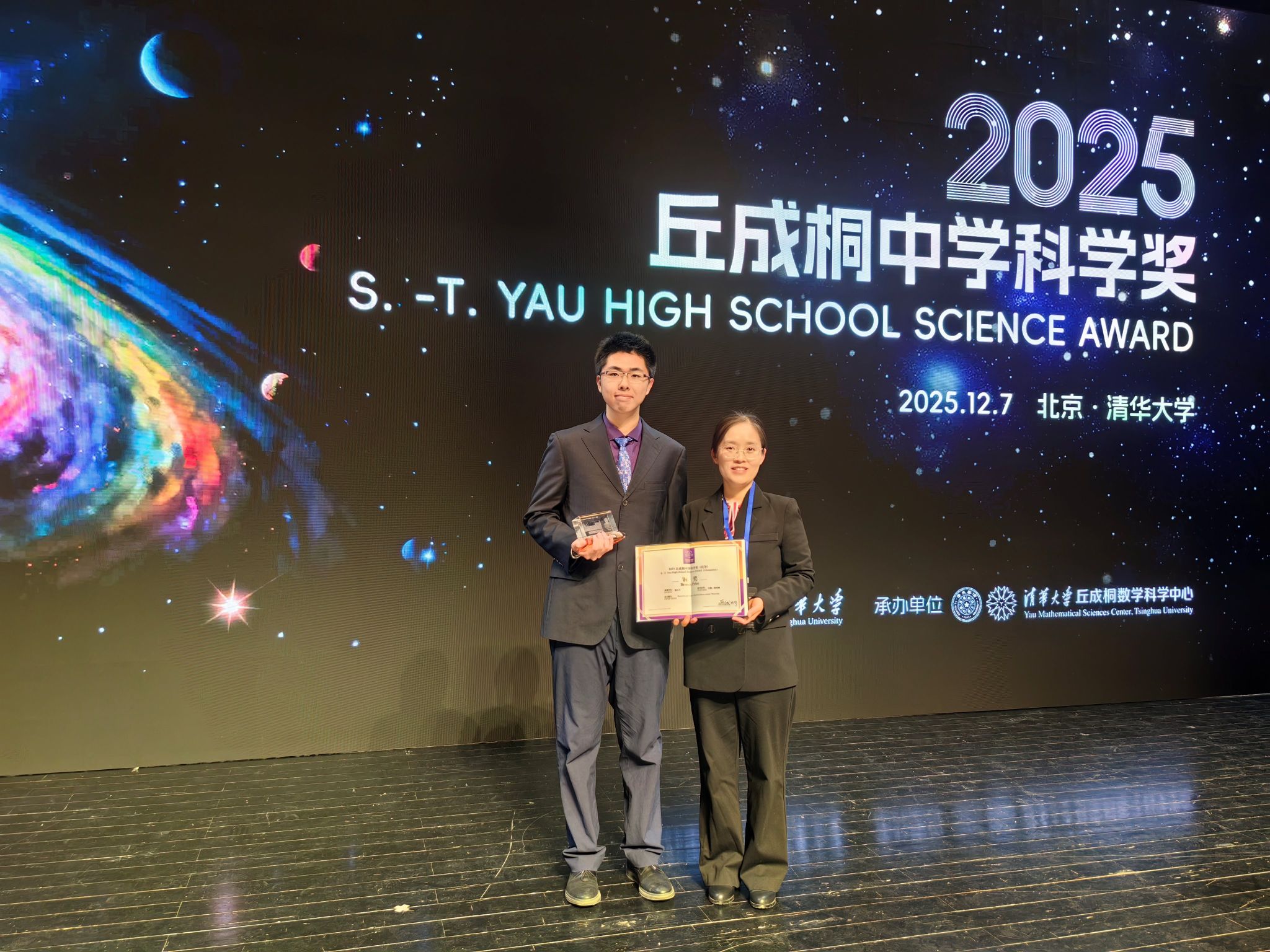 2025年12月6-7日,2025年丘成桐中学科学奖总决赛在清华大学举行,经过多轮答辩评议环节,皇冠体育官网学生在2025年丘成桐中学科学奖中表现优异,共获得3项一等奖和1项二等奖。其中,杨天予同学荣获化学铜奖,刘雨澄同学荣获生物优胜奖。
