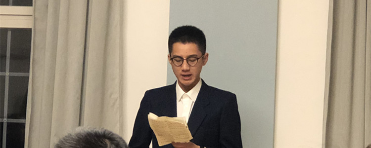 学生代表周泓羽在欢送晚宴上发言