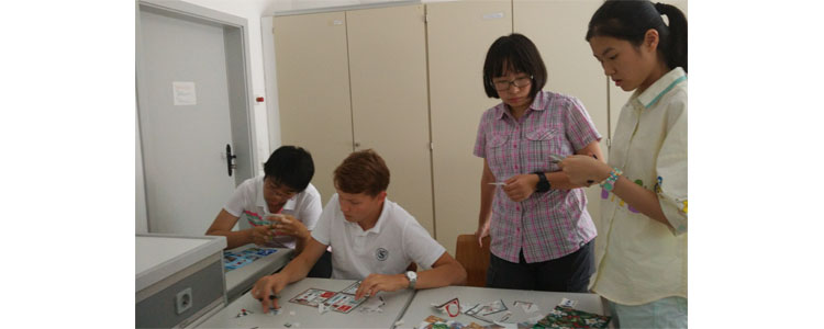同学们随伙伴体验学校手工课