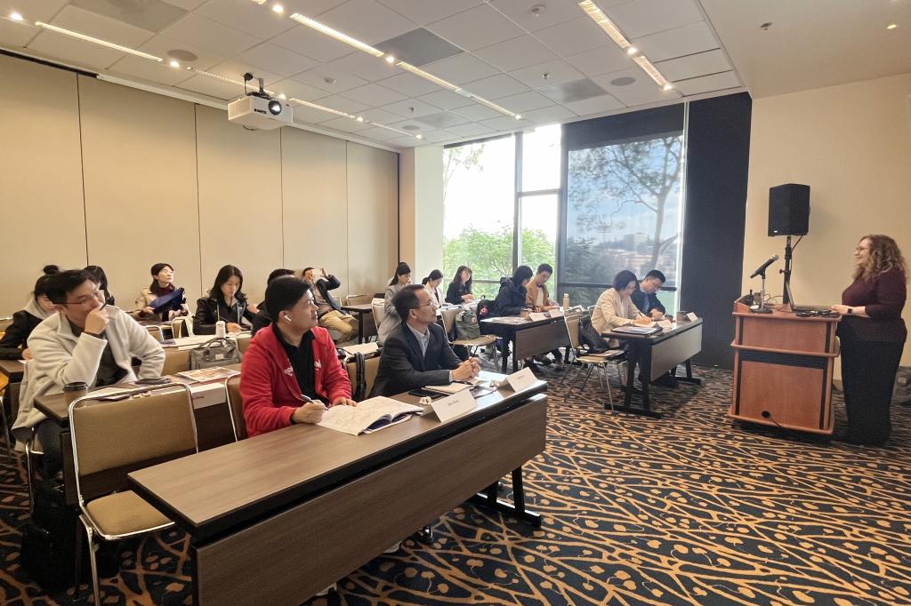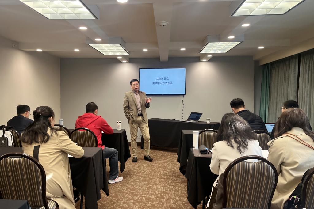 研修期间,美国教育联合会首席驻华代表孙连成主任向老师们讲解了美国基础教育领域里学生学习方式的变革历程,以及由此产生的多种教学策略,在教学理论上强调了当前以深度学习提升学生高阶思维的重要性。