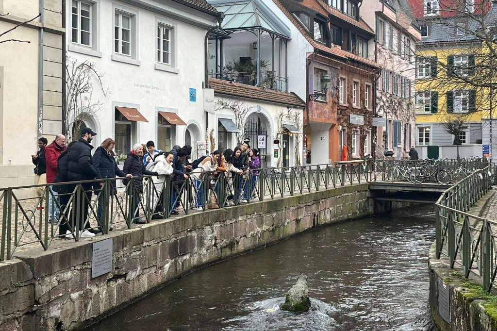同学们在弗赖堡护城河岸游览