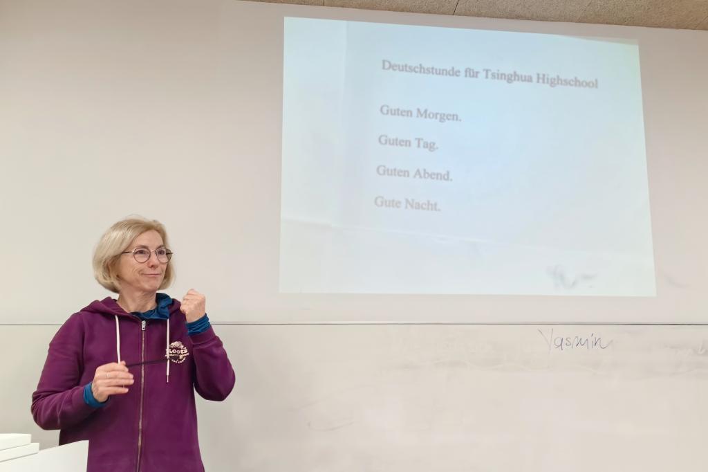 德语老师Yasmin教授德语课,同学们认真聆听