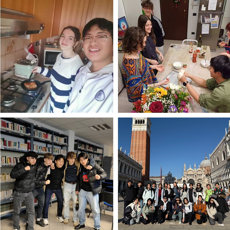 在米兰,同学们在各自的接待家庭参与烹饪与烘焙等活动,亲手制作意大利面与传统甜点,在面粉与黄油的交融中,感受意大利家庭文化对美食传承的重视。在威尼斯,乘坐贡多拉穿梭于水巷时,船夫热情讲述着当地独特的“水城”社交文化,从邻里间在桥头的日常问候,到水上集市的热闹交易,同学们沉浸式体验到威尼斯人依水而生的生活哲学。这种深度融入当地生活的体验,不仅让同学们感受到意大利文化的独特魅力,也进一步培养了他们的跨文化理解力与适应力。