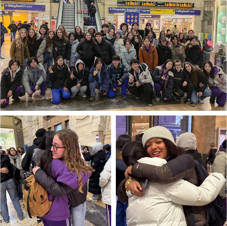 附中师生与意大利米兰市曼佐尼市立语言学校师生在米兰火车站合影、附中学子与意大利伙伴依依惜别