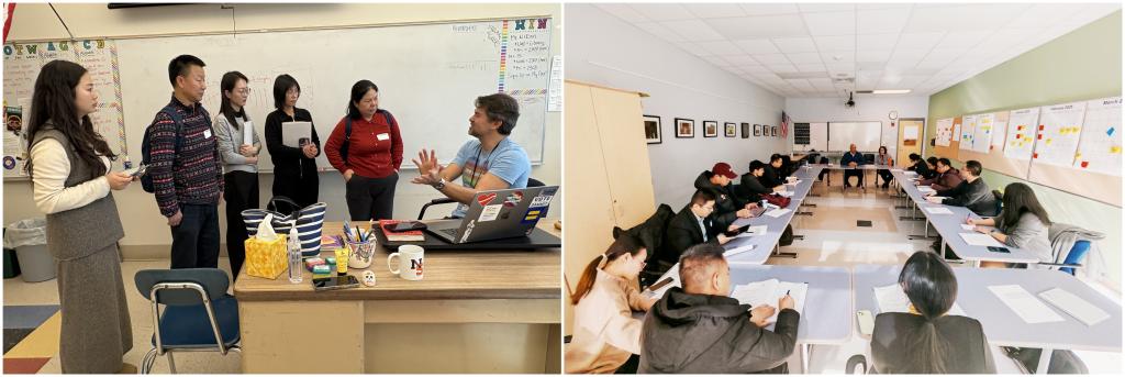 附中研修团一行在哥伦比亚大学教师学院参加了教师培训项目。培训期间,附中研修团一行先后参加了哥伦比亚大学四位教授主持的五场工作坊。这些工作坊内容丰富多元,涵盖教育领域多个关键话题。面对来势汹汹的人工智能浪潮,哥伦比亚大学教师学院数字未来研究所首席教学设计师Minh Le带来了“Exploring AI in Education”工作坊,为人工智能时代的教学注入新的活力与方法。附中研修团一行还参与了由Minh Le教授主持的《整合先进教学方法和新兴趋势》工作坊。Minh Le教授团队分享了将虚拟现实(VR)、增强现实(AR)等现代课堂创新工具融入教学活动的方法。