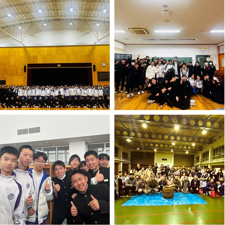 在和歌山市,初23学部同学们与粉河中学日本同学开展交流学习,受到了该校师生的热烈欢迎。同学们通过参观校园,了解了当地中学的课程设置,感受了对学生自理能力的培养;午休时同学们与社团同学交流,结交了国际友谊;下午同学们走进课堂,体验不同文化的碰撞。交流结束后,同学们入住和歌山市少年之家,体验制作年糕,并品尝了自己的劳动成果。