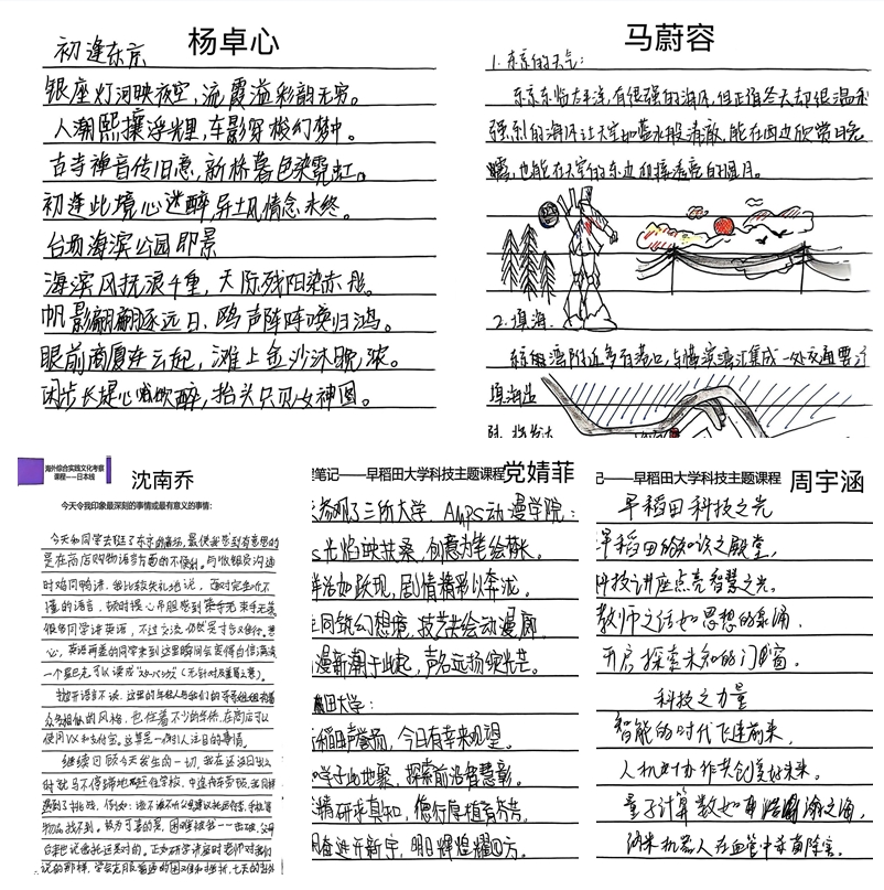此次研学之旅,同学们行有所思,学有所获,点滴进步都记录在他们每天的研学手册和作业中。初23学部同学们通过本次赴日文化考察课程,不仅拓宽了国际视野,提升了跨文化交流能力,还激发了学习兴趣,培养了创新思维和实践能力,为未来的成长和发展奠定了坚实的基础。