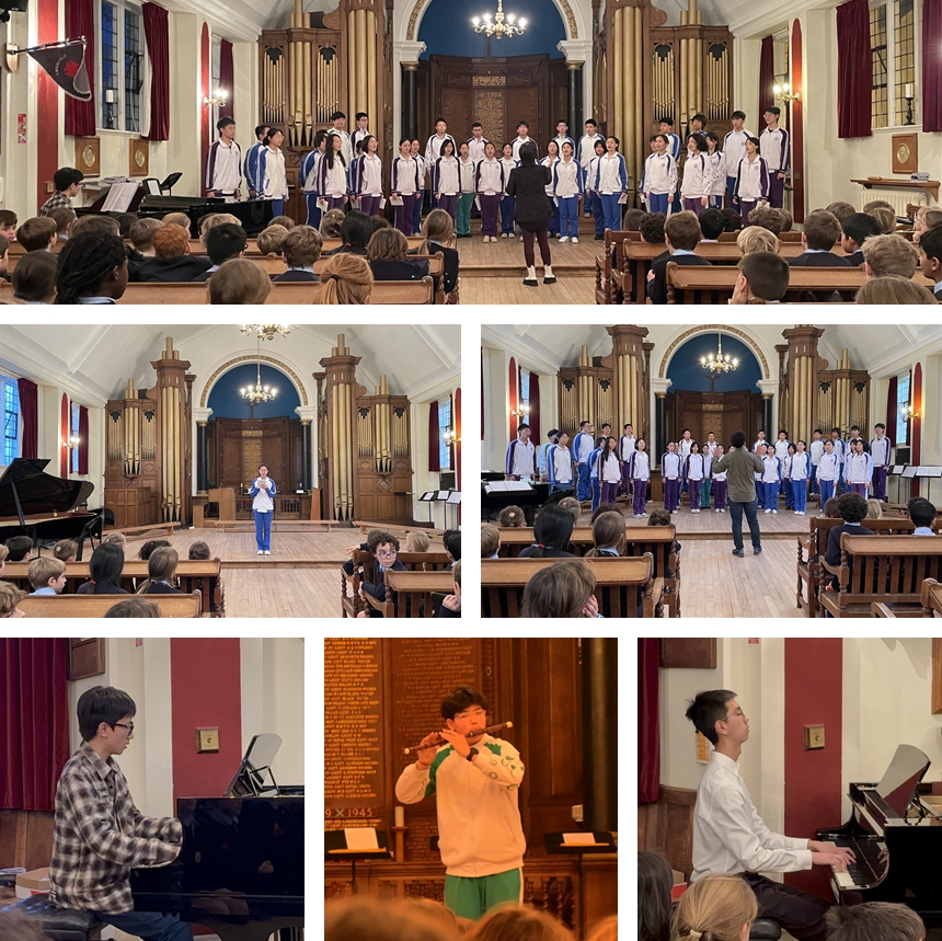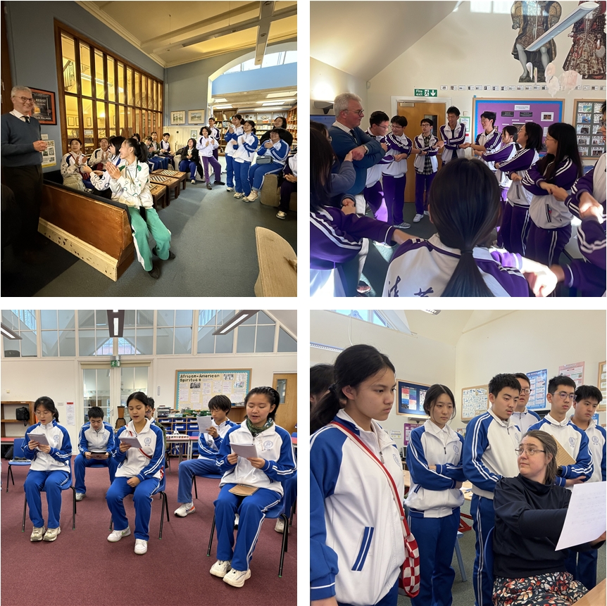 整个过程中,同学们热情高涨,与卡格菲尔德学校的师生们积极互动、亲切交流。交流活动的尾声,一场热闹非凡的音乐会将氛围推向了高潮。附中学子们精神饱满,合唱了《warm up song》和《彩虹》,优美的歌声回荡在校园的每一个角落。随后,两校学生携手,共同演绎了当天所学的五首民谣,不同的嗓音交织在一起,却完美地融合,谱写出一曲跨越地域与文化的友谊之歌。