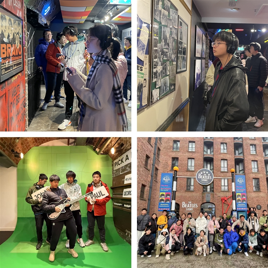 师生参观了英国音乐体验中心和披头士乐队故事博物馆。在英国音乐体验中心,陈列着各乐队的演出服、代表性乐器,充分展现了各个乐队的不同风格。同时也提供了乐队四项的体验活动,我们学习了鼓点节奏,感受贝斯与吉他、键盘的弹奏也学会了不同风格的舞步。