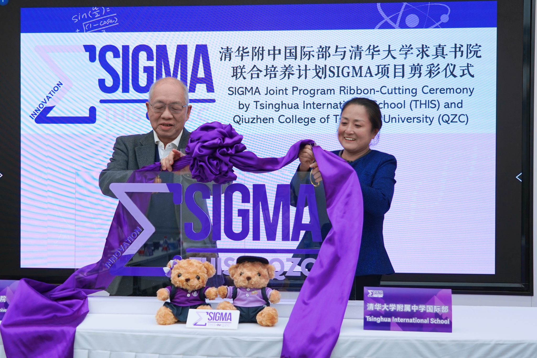 丘成桐院长和方妍校长共同签署了“SIGMA Program”合作项目书,并为SIGMA ∑项目Logo发布剪彩。