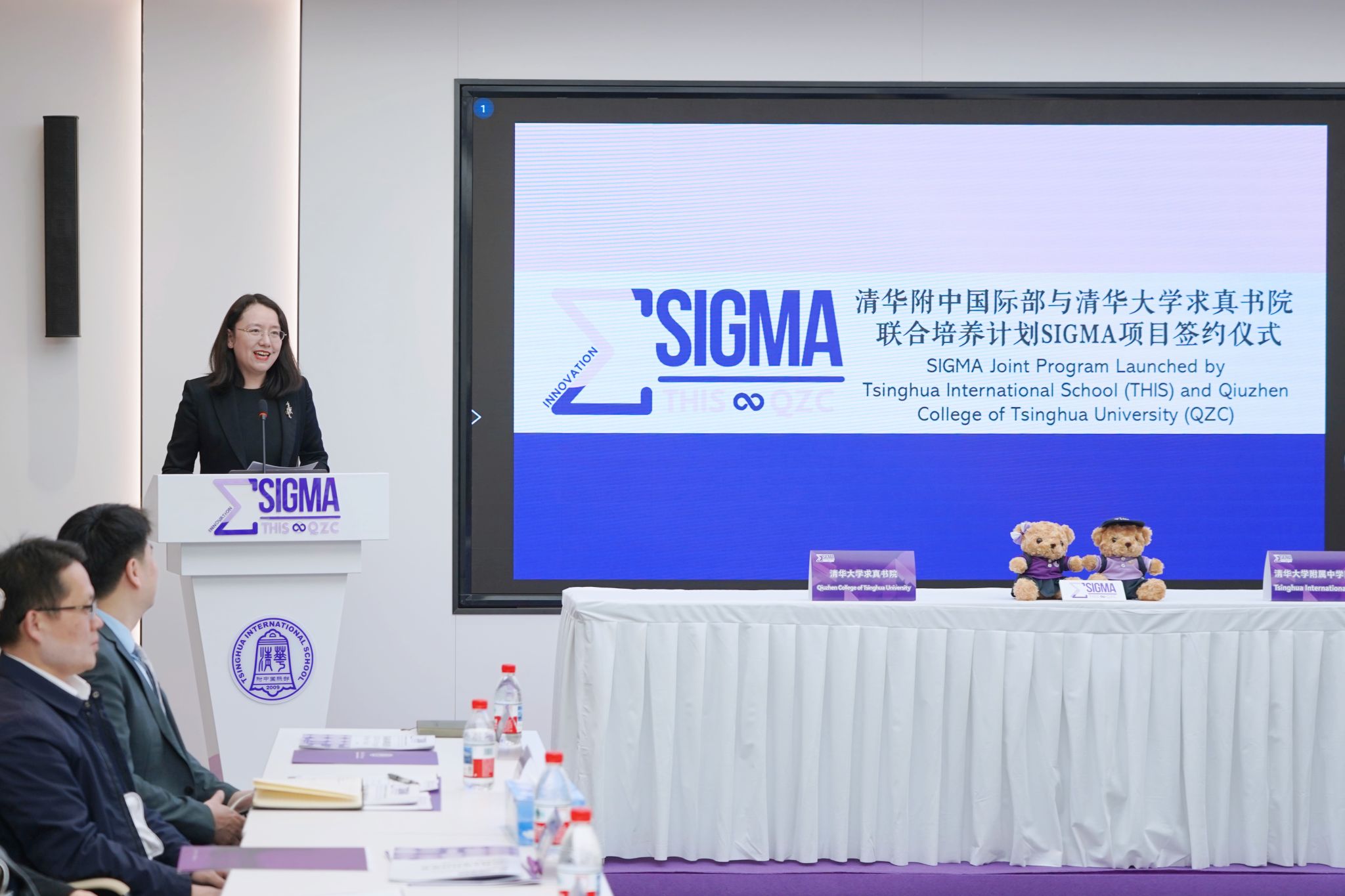 SIGMA项目合作书的签订标志着清华大学求真书院与皇冠体育国际部将携手共进,共同致力于“SIGMA Program”的发展。∑ Logo的发布则象征着这个项目正式开启新的征程,简洁而富有力量感的∑ Logo,代表着我们将凝聚各方资源与力量,共同服务清华大学和北京市引进人才,培养出更多优秀的数理精英,为我国乃至世界的教育事业和科学事业添砖加瓦,引领SIGMA项目走向无限!