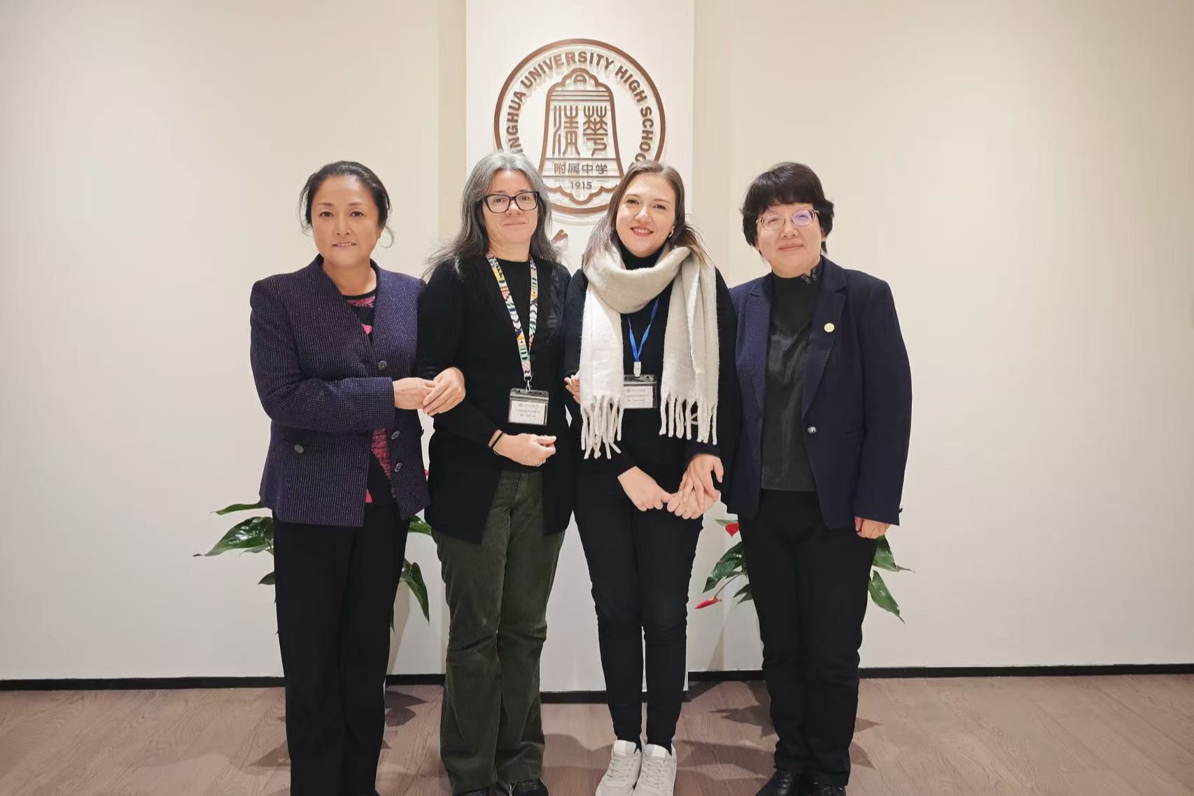 皇冠体育官网校长方妍(左一)、副校长张洁(右一)与意大利教师合影