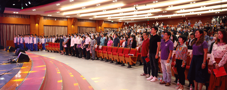大会在皇冠体育七位校领导和各年级师生的教师节祝福短片中拉开序幕。首先,全体起立,高唱国歌。