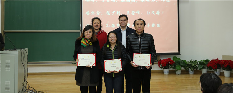 之后,方妍书记宣读了基本功大赛和论文的获奖名单。本次青年教师基本功大赛共有78人参赛,共评出一等奖15名,二等奖23名,三等奖9名;本届论文年会共收到论文206篇,经过外请专家及校内专家的两轮评审,最终评出一等奖论文42篇、二等奖论文116篇、三等奖论文48篇。校领导为本次青年教师基本功比赛获得一二三等奖、论文年会评审一等奖的教师颁发了证书并合影留念。
