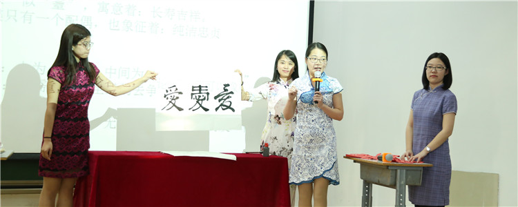 英语组将学科展示的背景设置在了美国的一所中学里,老师们向外国友人展示了中国的语言特点和文化精髓,用英语朗诵诗歌《水调歌头》,并展示中国武术、剪纸、书法及包饺子等传统文化,体现了英语组教师的语言功底和文化底蕴,展现了英语组教师的特长和积极传播中国文化的意识。