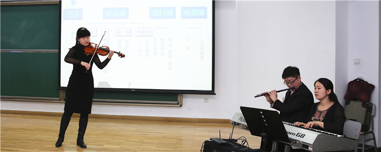 音乐组教师共同演奏了小提琴协奏曲《梁山伯与祝英台》,以“奏鸣曲式”为题,通过讲解和现场表演的形式带大家走入音乐的世界,展示了音乐教师“吹、拉、弹、唱”的基本功和传承中华民族优秀文化的历史重任。