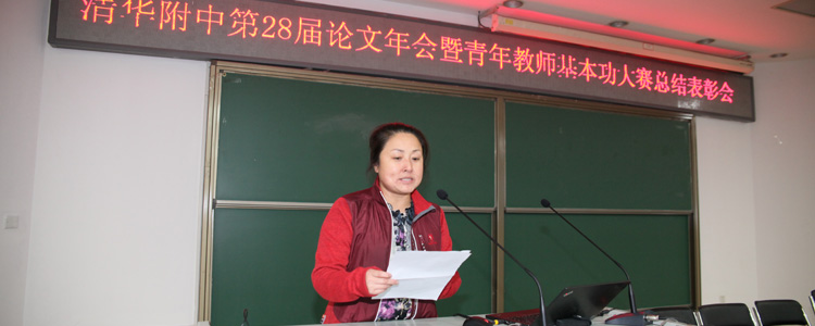 党委书记方妍宣布了本届教育教学论文年会论文获奖名单以及2014-2015学年度青年教师基本功比赛获奖名单。