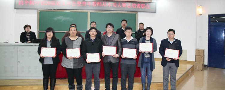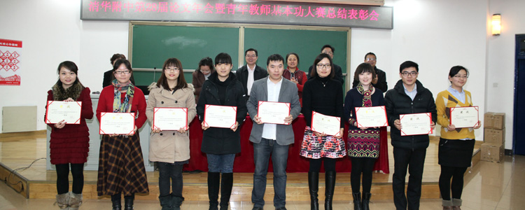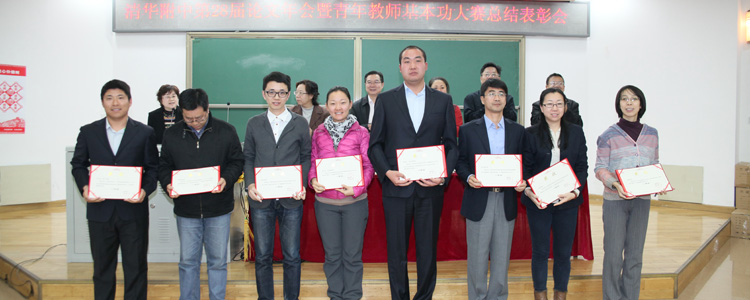 本届年会共收到论文173篇,经过本校教师组成德育组、管理组、理综组、数学组、英语组、语文组和文综组共七个组的38位评委进行初评,并由海淀区教科所专家汇总评审,最终评出一等奖论文39篇、二等奖116篇、三等奖18篇。2014-2015学年度青年教师基本功比赛中评选出特等奖6名、一等奖7名、二等奖17名、微视频特别奖7名以及最佳组织奖1个。与会校领导为获奖者颁奖。