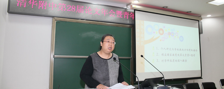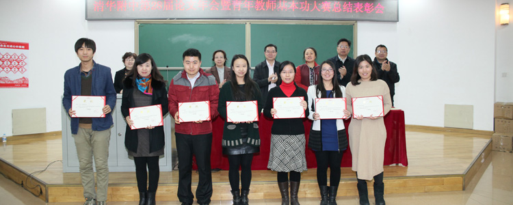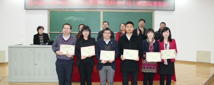 论文获奖教师代表张晓明老师做了“借力教学研究实现专业成长”的报告,介绍了如何将个人研究与学校教改方向有机结合,在国家教育改革大背景下思考教学以达到对学科本质的深入理解的过程。青年教师基本功比赛获奖教师代表潘天俊做了“2014年青年教师基本功比赛反思”的报告结合自己对翻转课堂的理解和实践以及比赛情况表达了对教学的新认识和感悟。