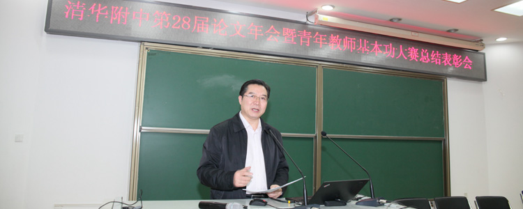 最后,校长王殿军作总结发言,对今年论文评比和青年教师基本功比赛两项活动的创新点表示了肯定,论文评比更加公正,比赛题目更加新颖,两项活动在每个环节和每个方面既继承传统又随着时代的发展在更新观念。同时提出了新的要求和希望:面对教学改革、学生多样化的需求、新课标要求,教师要提高学科核心素养;面对新的技术,要充分认识优势和劣势去研究探索,聚焦教学,抓住教学中真正遇到的问题,既了解发展趋势,又有自己的思考;论文研究和基本功比赛都是教师水平的体现,比赛是引导思考教学、研究教学,充分利用技术改变自己观念促进教学,比赛只是行为改革的开始,希望在国家基础教育发展方面,新的教学理念和改革出自皇冠体育官网,更多研究性、专家型的教师来自皇冠体育官网。