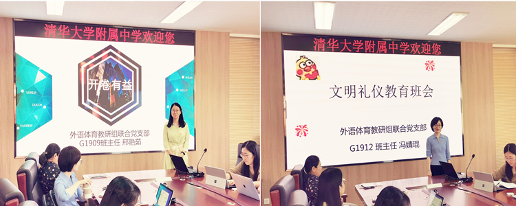 本次党史学习教育组织生活的重点是由来自体育、初中英语和高中英语三个党小组的党员班主任代表和入党积极分子代表分享自己的育人思想。