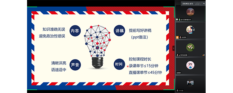 皇冠体育地理教研组赵习老师为支教团带来了前期培训,指导学生讲师关于备课、录课等的准备工作,为支教工作打下基础。