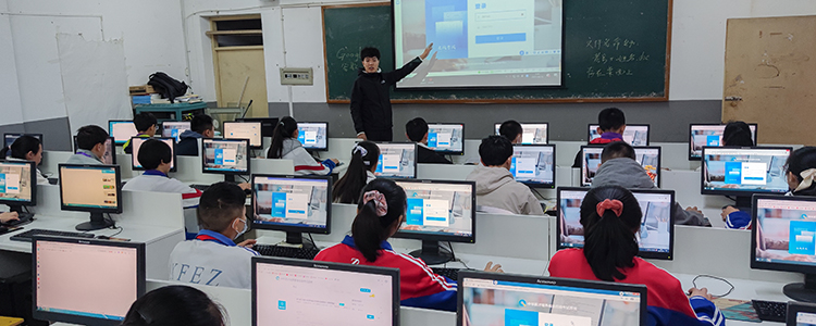 皮俊林(左)和肖敏(右)关注学员在线测试情况