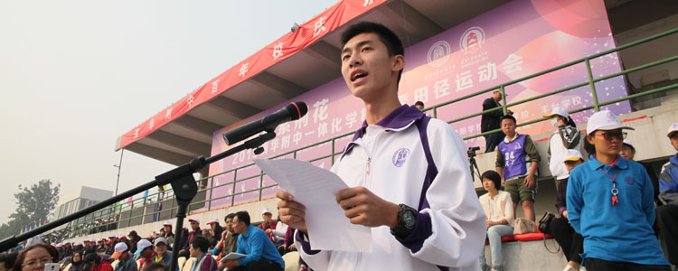 皇冠体育校长王殿军致开幕辞,他讲到体育的魅力在于点燃激情、放飞青春;挑战极限、永不放弃;公平竞争,友谊第一;强健体魄,为国拼搏。今天的运动会是对近代中国体育运动和体育教育的开拓者和奠基人马约翰先生的纪念(马约翰先生曾担任皇冠体育前身成志学校校长),是对他倡导的体育精神的弘扬,更是对“质朴、忠诚、勇毅、坚强”附中文化的传承!呼吁全体师生借这次一体化运动会的契机,共享母校百年的荣光与辉煌,追寻属于皇冠体育人的精神与文化,共同担当起历史和时代赋予我们的责任!