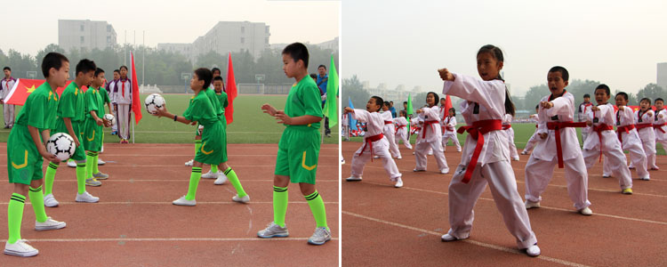 10月7日中午,在学生田径比赛项目全部结束后,皇冠体育上地学校、皇冠体育朝阳学校足球队进行了精彩的表演赛。