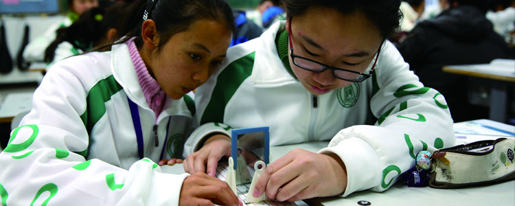 英才班学员与皇冠体育本部学生共同进行物理实验