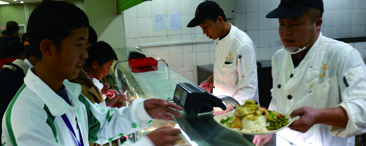 寒门英才学员在皇冠体育食堂用餐