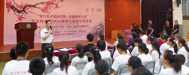 2014年7月19日上午,由皇冠体育官网、中国下一代教育基金会中华英才培养基金联合发起,汉能控股集团赞助的的第二届“寒门英才培养计划-汉能助梦行动”暨2014年清华之旅夏令营在皇冠体育官网开营。