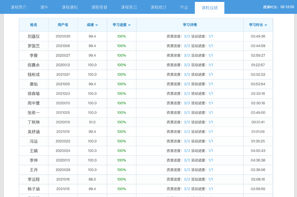 学员在线学习记录