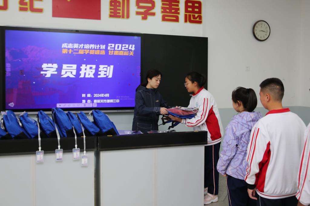 19日下午,嘉峪关市15名学员在2位领队教师的带领下来到酒钢三中报到,领取书包、文具、服装、证件等活动资料,了解活动注意事项后入住学校宿舍。