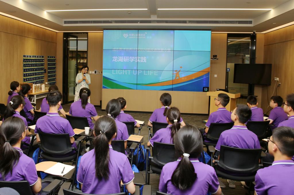 12日上午,学员们来到龙湖礼嘉办公楼,进行职业生涯规划研学课程。通过主题分享的形式,龙湖集团人力资源和商业运营的志愿者与学员们分享求学经历和职业生涯的历程,以自身阅历帮助大家更好地了解自己的兴趣、特点和价值观,让学员未来更有针对性地选择适合自己的学科和课程,对未来的职业规划有进一步了解。