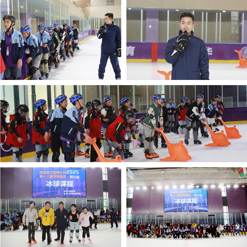 其中,冰球课程作为本次夏令营的一项特色实践,备受学员欢迎。学员们在专业教练的指导下穿戴装备、走上冰场,完成滑行基础训练和趣味性团队游戏。在滑行与跌倒中锻炼身体协调,在合作与互动中增强集体意识。课程现场气氛热烈,充满活力,学员们在轻松愉快的氛围中不断尝试、突破自我。冰上体验活动不仅锻炼了身体素质,更激发了学员们的勇气、协作与团结拼搏的精神。