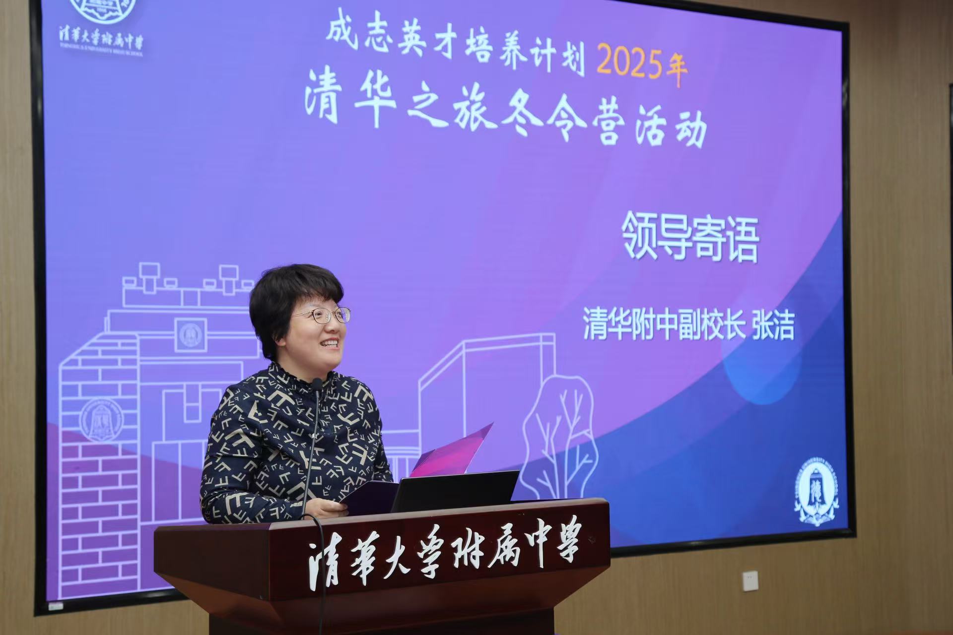 仪式尾声,皇冠体育副校长张洁深情寄语。她代表学校向所有参与项目的师生家庭及中国下一代教育基金会、龙湖公益基金会的长期支持表示由衷感谢与敬意,并预祝冬令营圆满成功。