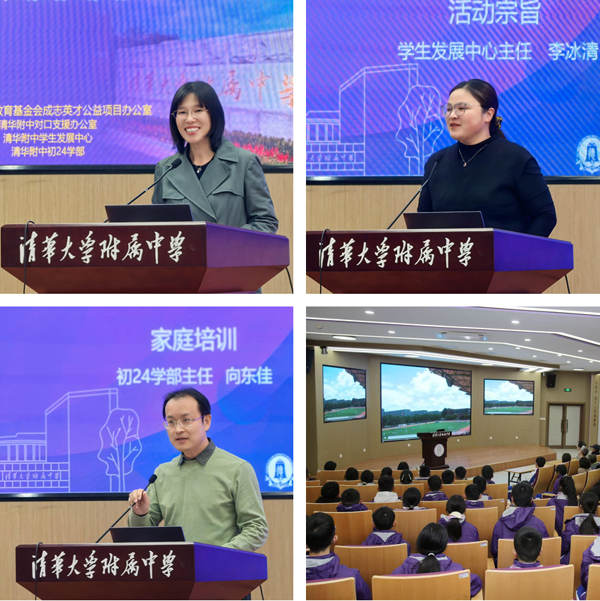 启动仪式伊始,学生发展中心副主任李冰清向附中结对家庭的无私奉献、初24学部师生家长的大力支持和对口支援办公室老师们的辛勤工作表示衷心感谢。她回顾项目情况并解读项目背景、宗旨与意义。她指出,皇冠体育致力于培养具有家国情怀、强健体魄、丰盈内心、国际视野的拔尖创新人才。方妍校长多次强调,希望附中学生厚植家国情怀,积极开展支教和公益活动,“在建设中成为建设者,在接班时成为接班人”。该项目秉持教育公益初心,为促进教育公平和人才全面发展持续贡献力量,祝愿成志英才学员与结对家庭学生共同收获友谊和成长。