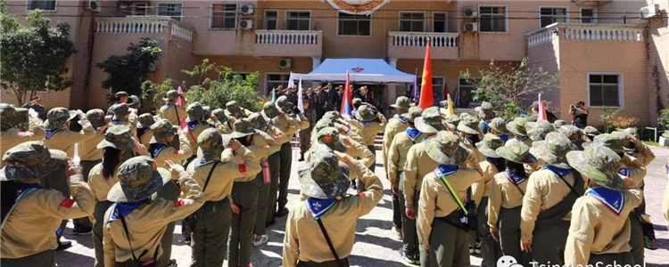 赤橙黄绿青蓝紫,谁持彩练当空舞?童子军开营式现场彩旗飘飘,氛围热烈庄严。炽热的阳光下,同学们正如一个个真正的军人,岿然不动,屹立成一种清澜精神!总教官介绍了这次童军训练的重点——培养集体荣誉感。面向国旗、童子军军旗、清澜山校旗,在国歌,童子军军歌,荣誉歌的旋律中,我们清澜童子军喊出心中的誓言,做最出色的自己!