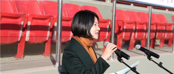 庄严的升旗仪式后,张红校长致辞。她从一百多年前奥林匹克之父顾拜旦对体育的深情讴歌,谈到五十多前响彻清华园的口号“无体育 不清华”,指出此次运动会不仅是对清华体育精神的弘扬,更是对 “自强不息 ”清华文化的传承!希望全体师生借这次秋季运动会的契机,共享运动带来的健康和快乐,追寻属于清华人的精神与文化,共同担当起历史和时代赋予我们的责任!
