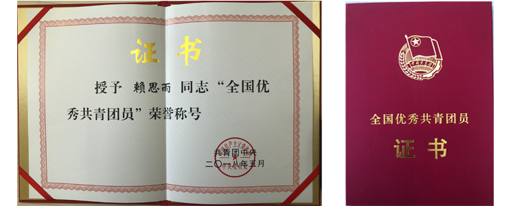 2018年9月14日,共青团中央全国“两红两优”评比结果公布,我校赖思雨同学获2017年度“全国优秀共青团员”荣誉称号。