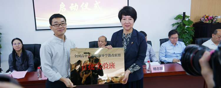 会上,联盟秘书长、中国教科院培训中心主任助理刘灿还向高新一中校长王淑芳授予“全国高中名校思维导学教改联盟首批实验班”牌匾。